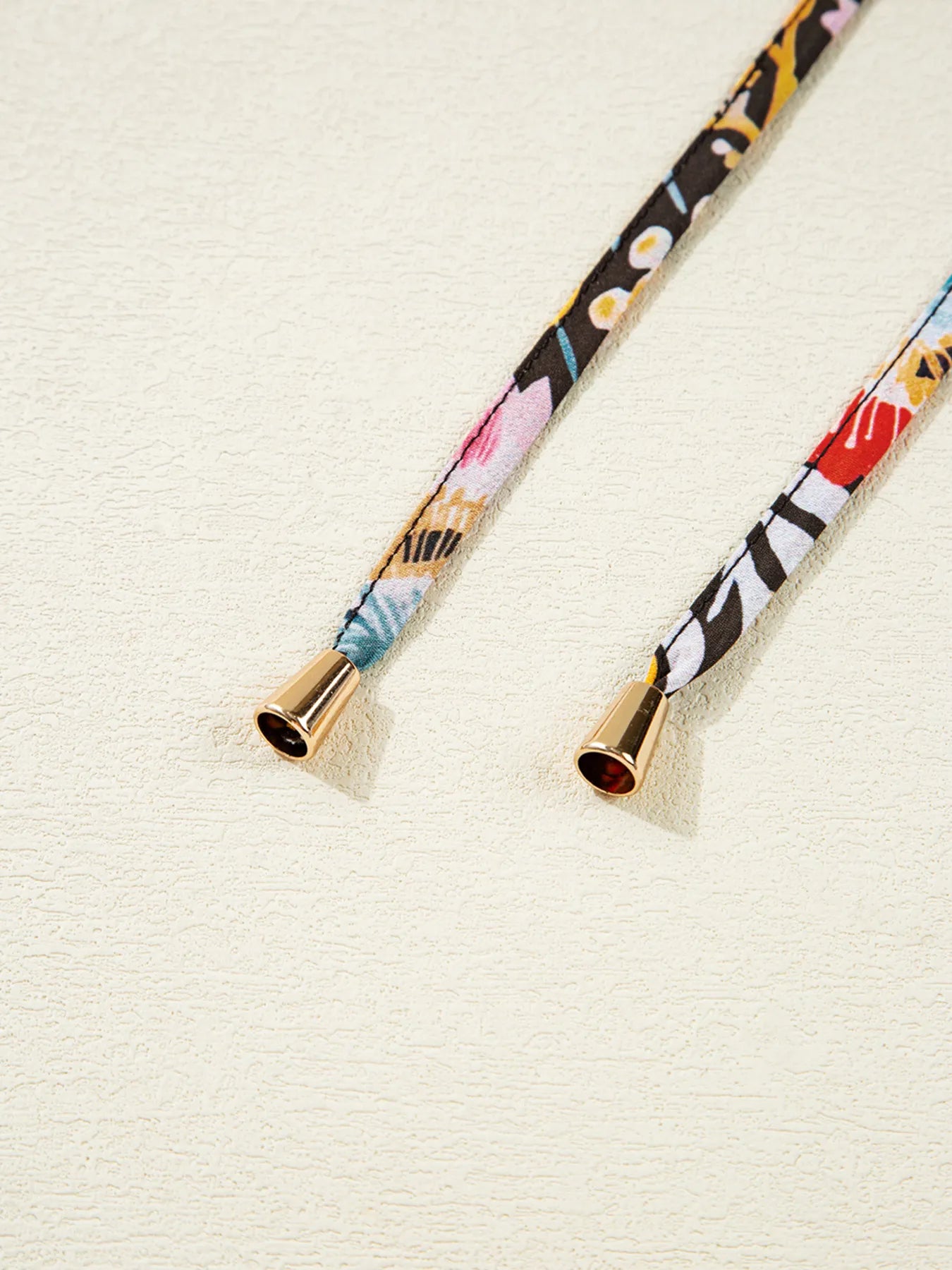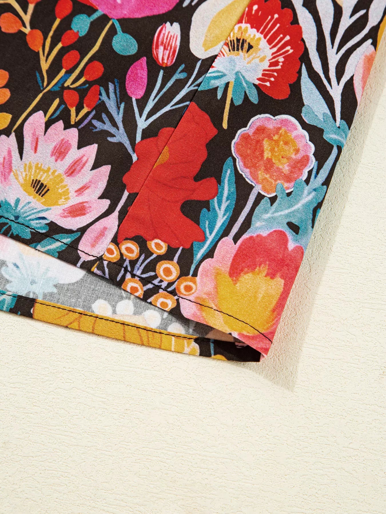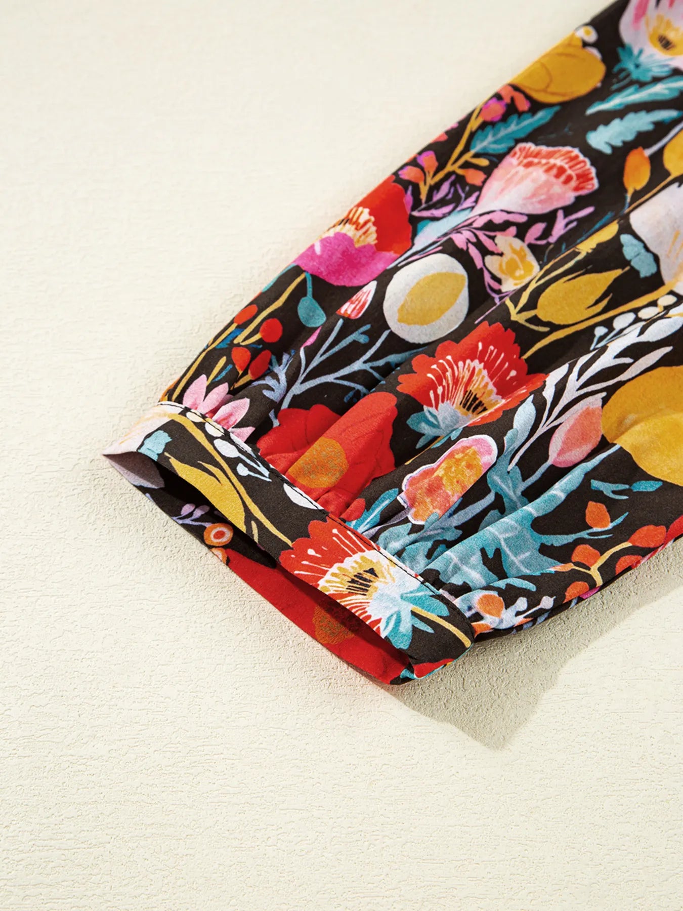 Floral 3/4 Puff Sleeve Tied Neck Blouse
