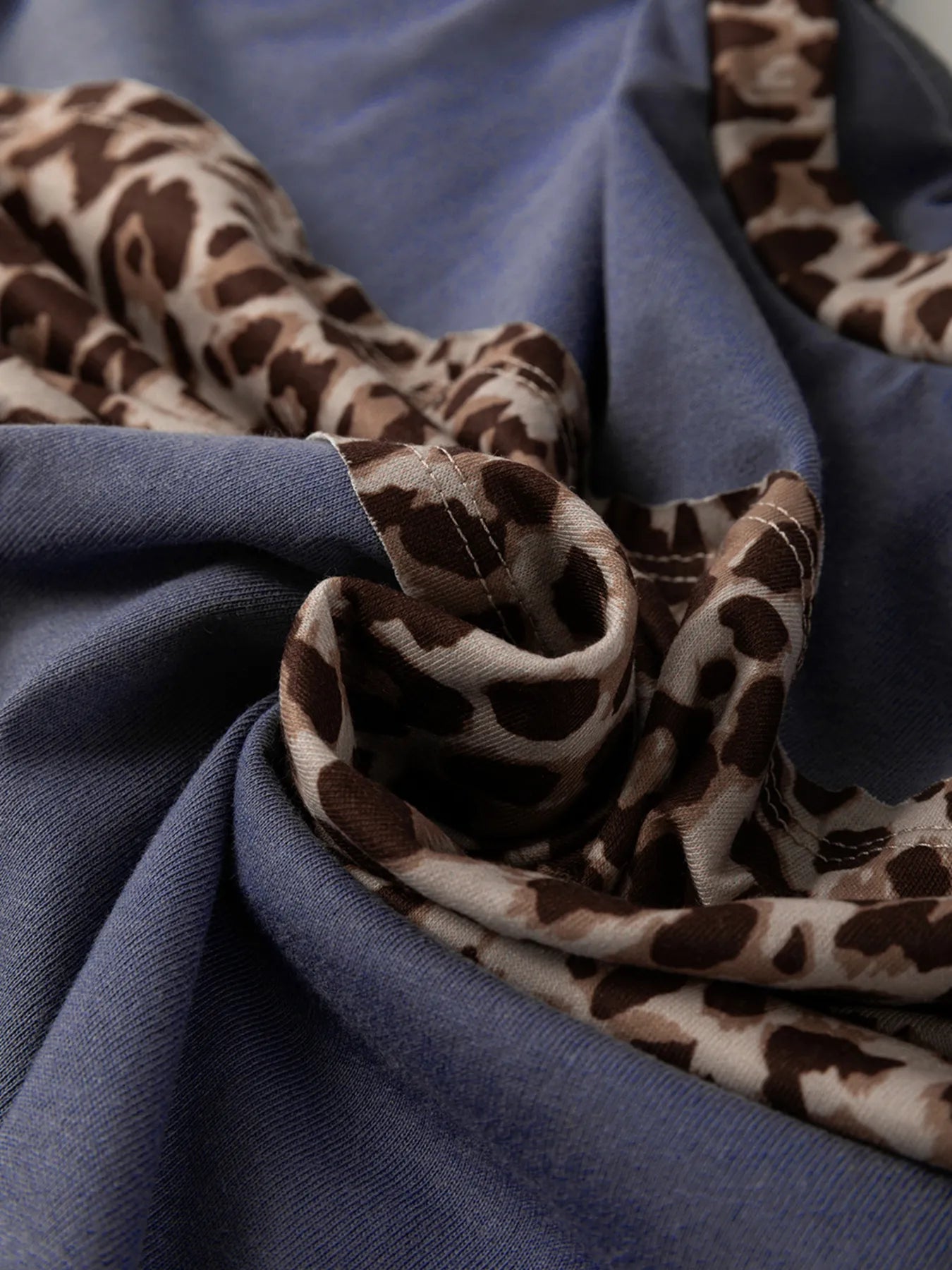 Leopard Color Block Long Sleeve Drop Shoulder Top
